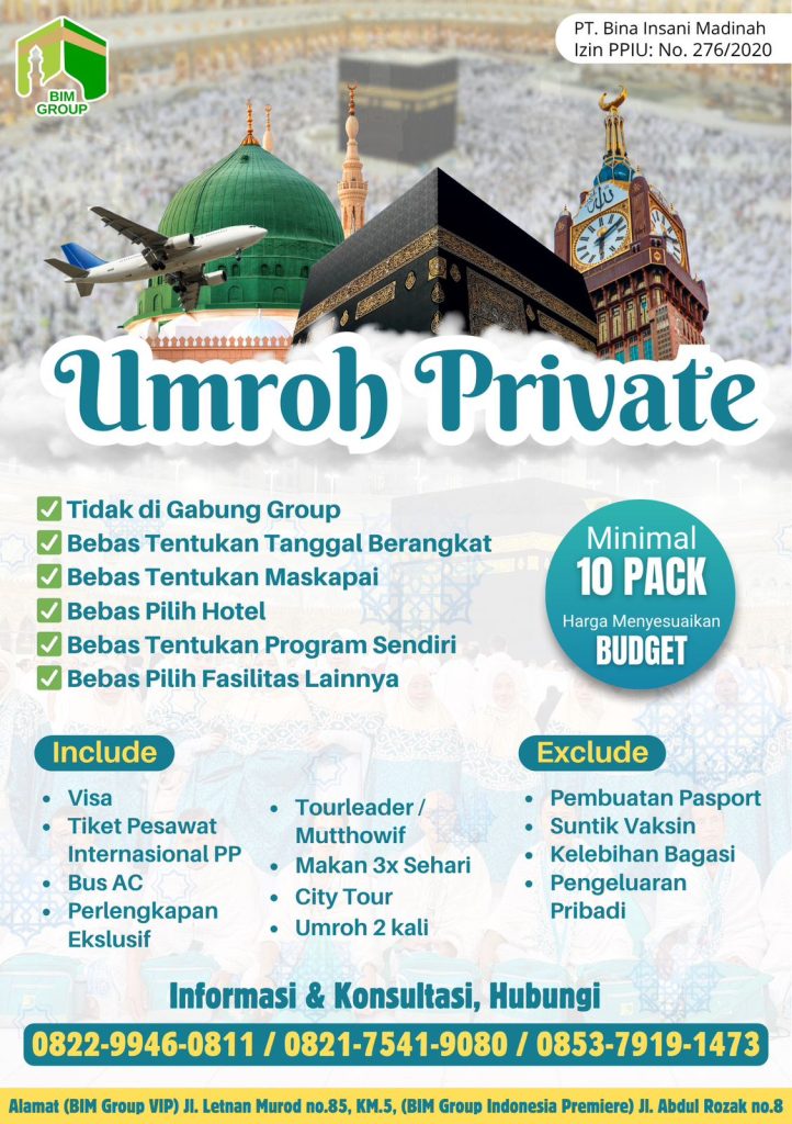 Umroh Private Hubungi Kami PT. Bina Insani MadinahIzin PPIU No : 276/2020Izin PIHK No : 02200035216970002 Admin 1 085379191473 Admin 2 082299460811 Admin 3 082175419080